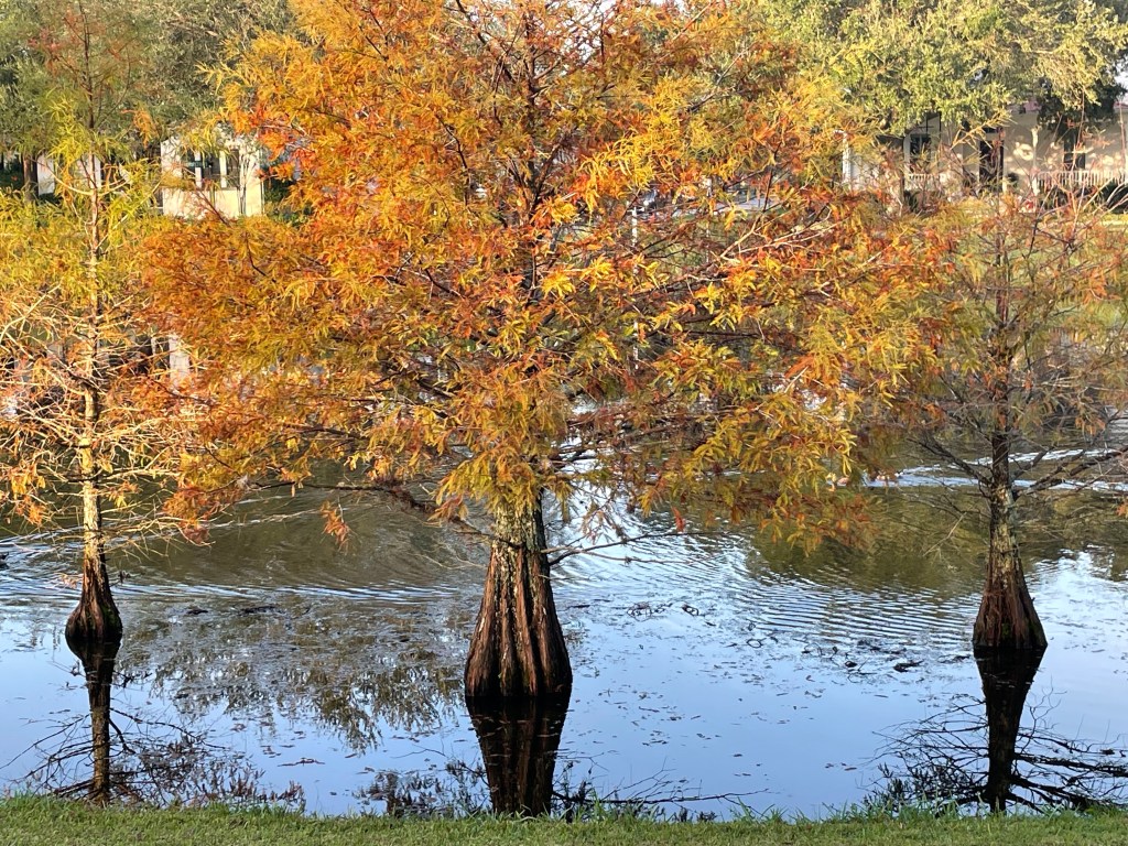 By October, the weather cooled and I could comfortably walk outside. I am fortunate to live in an area with several large ponds. These wetlands provide a perfect habitat for my favorite tree, the cypress.