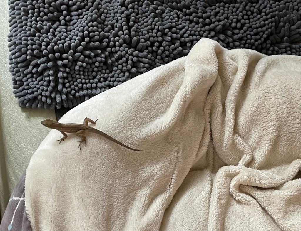 “Ugh! Another lizard entered the house.” I pulled our sliding glass door shut, but it was too late. Herb and I live on the first floor of our apartment building, and every time we open the patio door, we invite the natural world inside.