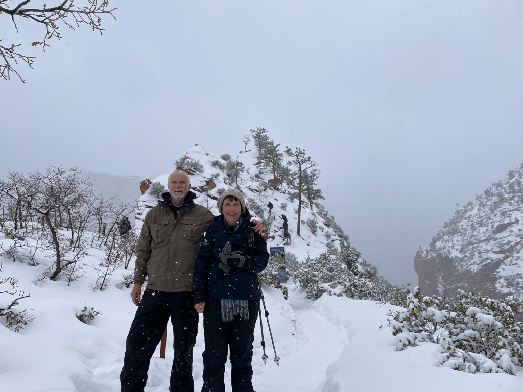 Our responsibilities as parents put a damper on Herb’s adventures. After all, raising kids was enough of an adventure. But now that we’ve retired, we have more time to travel. Last summer, Herb discovered Zion National Park was offering a Christmas in July sale. The drawback to the deal: you had to visit the park in winter. The ad referred to winter as “The Secret Season,” a time when the park is less crowded. Since our other trips to Zion occurred in summer, we thought a February trip would be fun.
